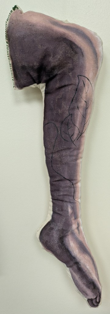 I work on organically shaped wood panels and canvas structures to result in a more tangible object. By creating these shapes without the use of electrically powered tools, I am utilizing labor of the human body in its recreation. Combining influences of contemporary figure work and traditional methods of wood working and stitching, my work participates in the continuing narrative of how humans exist within their surroundings. I invite my audience to consider their own reactions and understandings of society and their environment.